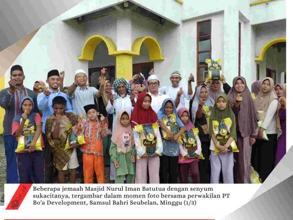 Yang diketahui, ada 75 paket bingkisan yang bertajuk ‘Senyum Ramadhan’ dibawa dan diserahkan kepada jemaah Masjid Nurul Iman Batutua, Minggu (1/3).